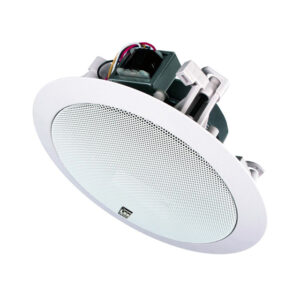 The principal characteristics that countersign this product are: 130mm double cone driver with waterproofed membrane to exponential profile, low distorsion, extremely linear frequency response in vocal range, elevated dispersion, coated painted steel grille, easy fixing with soft of torsion in inox steel for ceiling. CS5 uses a high level impedance speaker (52 Ohm nominal), this facilitates and allows the parallel connection on the same line for a maximum of 12 loudspeakers without transformers and constant voltage amplifier.
